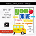 Bus driver appreciation tags, school bus driver gift ideas, bus driver gifts end of year, employee appreciation gifts, transportation appreciation gift ideas, school PTO appreciation gift tags