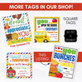 This colorful appreciation tag reads, "Thank you bunches for making our lunches!" Not only is this gift tag easy to edit, it can be used for printable kitchen staff or lunch lady appreciation tags for teacher or staff appreciation week. Perfect for your cafteria staff or volunteer soup kitchen thank you tags!