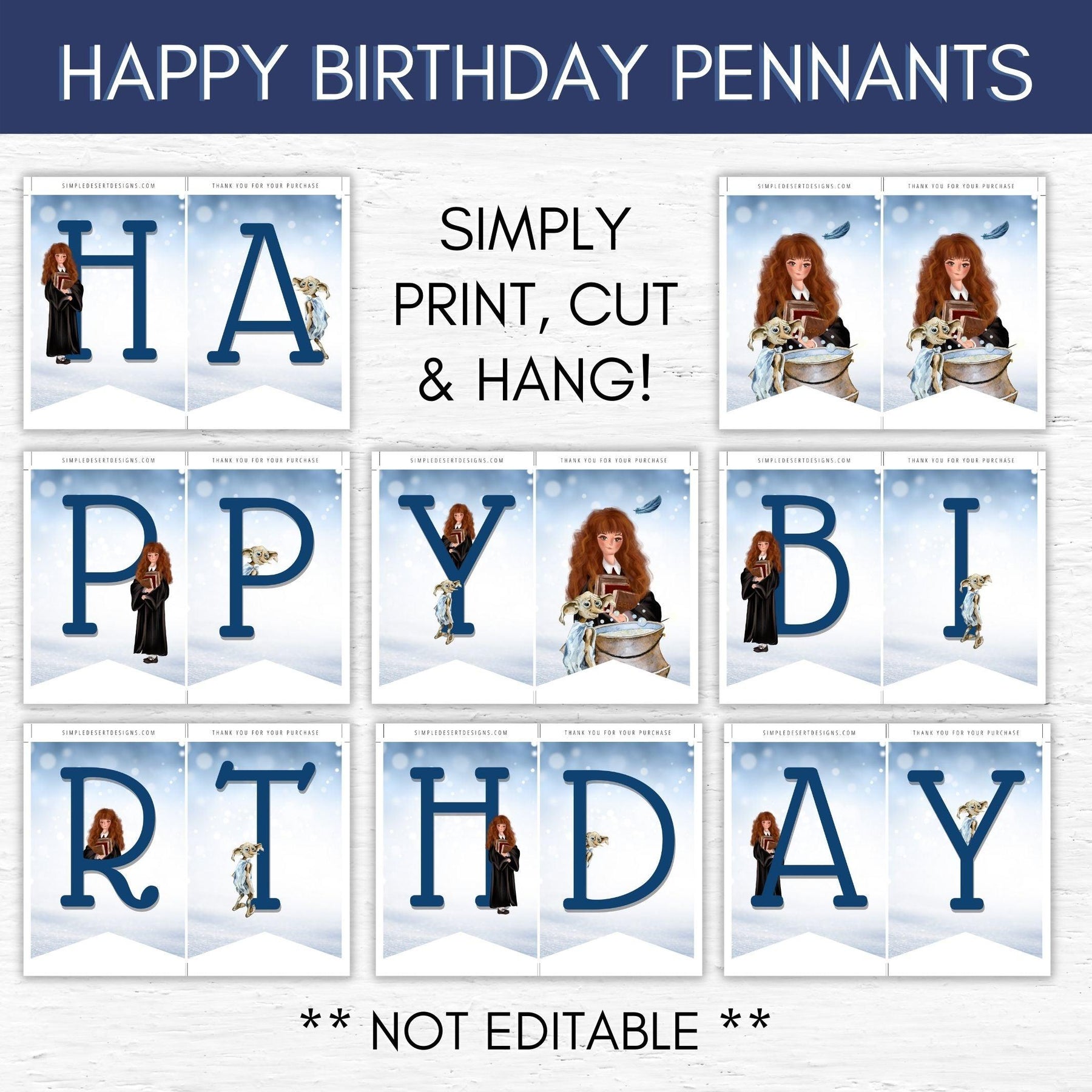 • Happy Birthday Pennants – 2 per page (Not Editable)