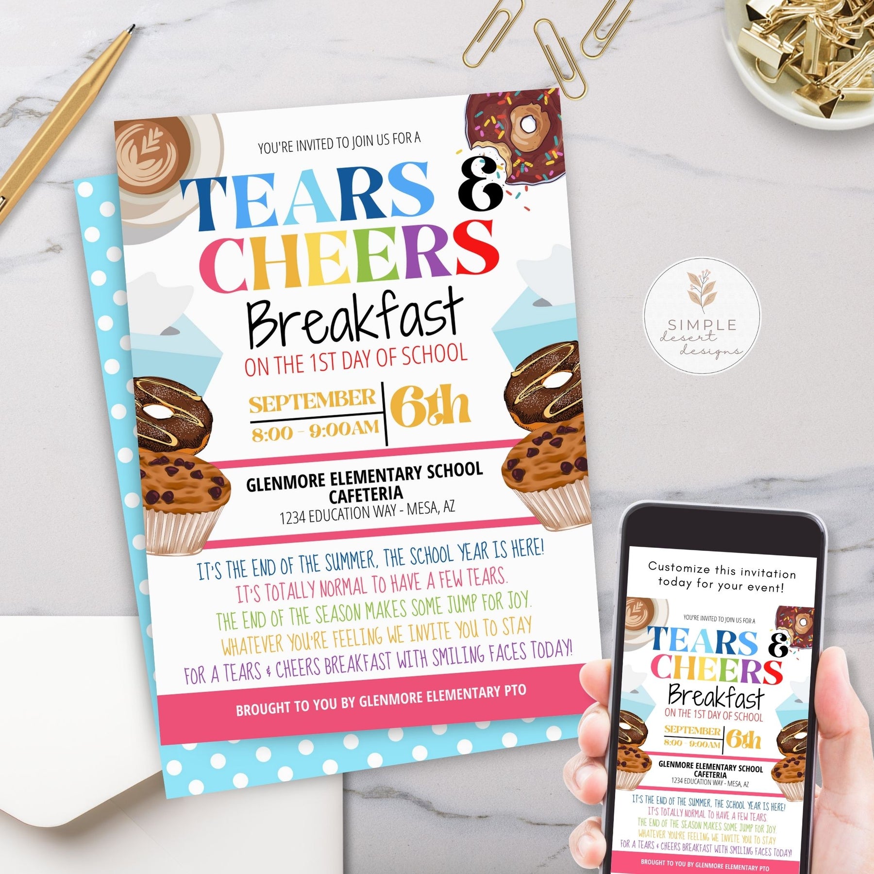 Tears & Cheers First Day of School Breakfast Invitation – Editable Template