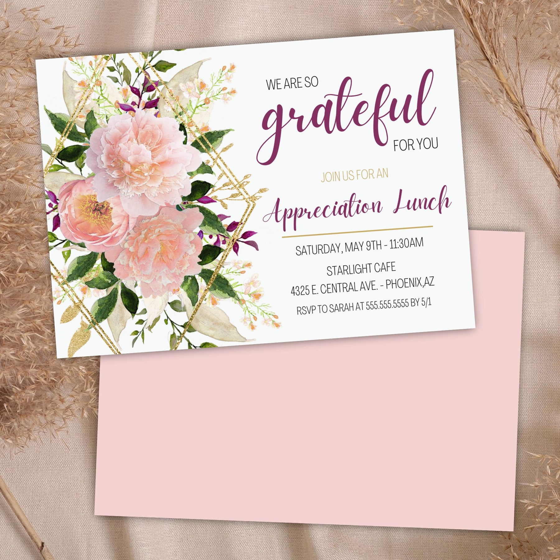 Floral “Grateful for You” Appreciation Invitation – Editable Template