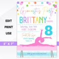 Colorful Gymnastics Birthday Party Invite Editable Template