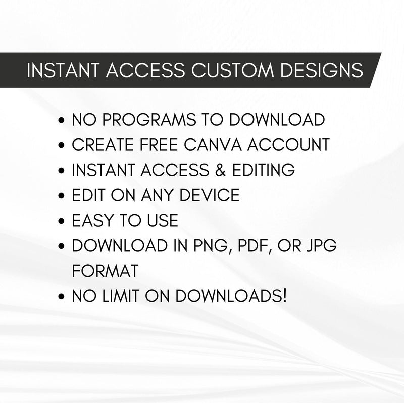 You are purchasing access to the template sold here which will be edited in Canva, a FREE online editing program that will allow you to edit this template to be just what you want. Edit on your phone, tablet or computer. Download and print from your home computer or at another print shop.