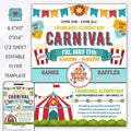 school carnival circus themed fundraiser event flyer set PTO/PTA/PTC, church, community invitation
