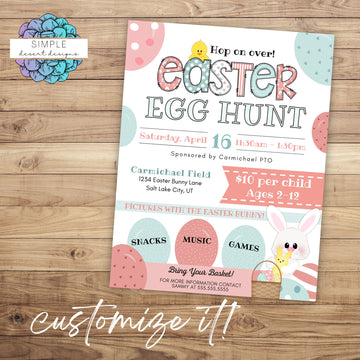 Editable template features fun and festive Easter Bunny and Easter Egg themed graphics to advertise your school, business or community event! 300 dpi graphics print crisp and clean!