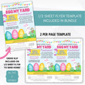 This editable and printable flyer, poster, sign marketing set is perfect for busy event organizers! Everything you need to advertise and promote your spring themed Easter egg my yard fundraising event is included in this bundle.