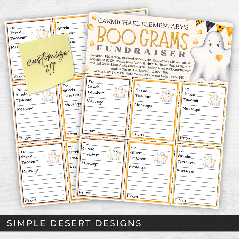 Grab this cute boo grams fundraiser for your Halloween fundraiser, school fundraising ideas or small group fundraising event. Customize the text for your specific event details and have a spook-tacular time! Both a full candy gram sheet and a flyer for sending home are included. Host the most amazing and profitable Halloween holiday gram fundraiser with this template set!