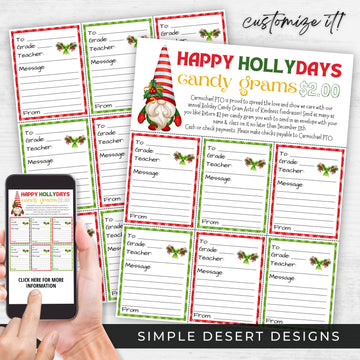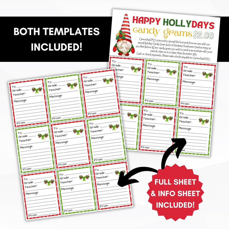 HAPPY HOLIDAYS CANDY GRAM FUNDRAISER SHEET TEMPLATE | SCHOOL PTO/PTA/PTC FUNDRAISING IDEA