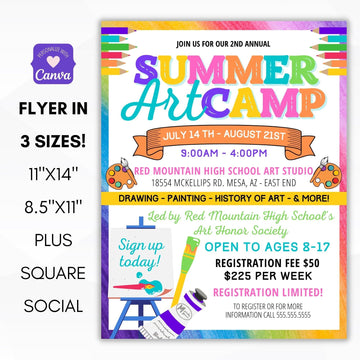 Includes Summer Art Camp Flyers in 3 Sizes!