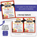 Advertise your movie night fundraiser with this eye-catching Dinner & a Movie Flyers Set! With easily editable text and graphics, you can create the perfect materials for your school, church, or community event. Get the perfect poster, flyer, and 1/2 sheet take home flyer to attract a crowd and raise funds!