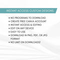 You are purchasing access to the template sold here which will be edited in Canva, a FREE online editing program that will allow you to edit this template to be just what you want. Edit on your phone, tablet or computer. Download and print from your home computer or at another print shop.