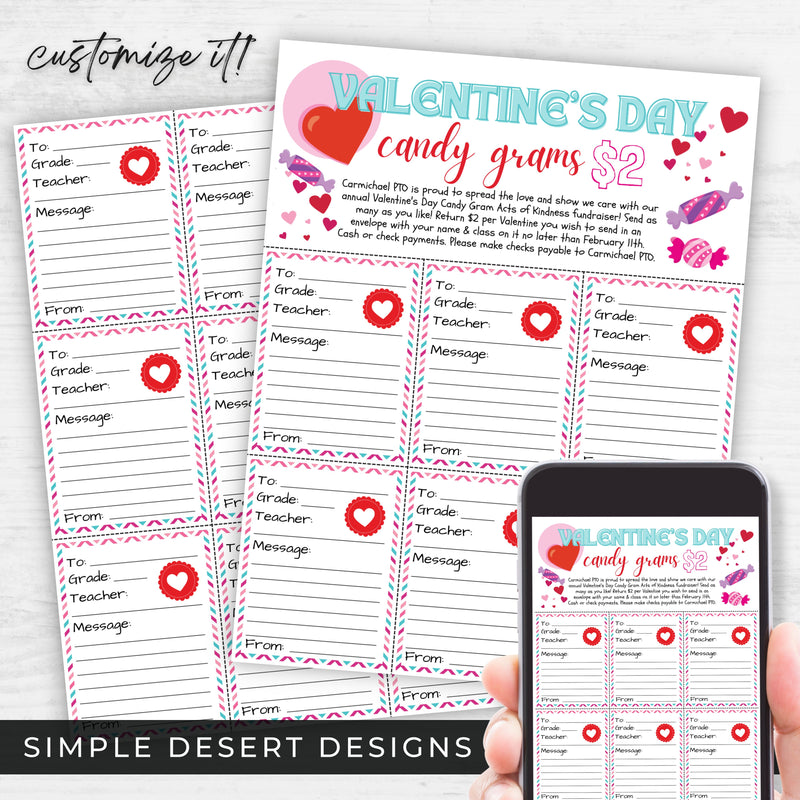 Valentine's Day Candy Grams Fundraiser Flyer for Schools