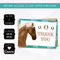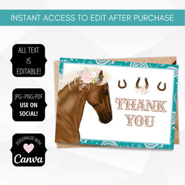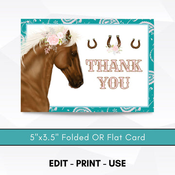 Girly Country Western Horse Thank You Card Printable
