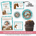 Matching bundle in the shop has everything you need for your horse lover's birthday party! Bundle includes 5x7 invitation, 2 signs, square favor tags, 2 round tags/cupcake toppers, thank you cards and a happy birthday pennant to match!