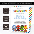 Take your superhero-themed birthday party invitation to the next level with a personalized, editable template. Add a touch of heroic excitement to your special day! Personalize all the text according to your preferences. Rock your superhero-themed celebration with ease using the text of your choice - it's a piece of cake!